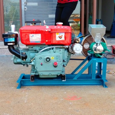 這是我們特別設(shè)計(jì)的,將3號大米膨化機(jī)與面粉膨化機(jī)(麻辣條機(jī))有機(jī)結(jié)合在一塊,用15或18匹(1100/1105)柴油機(jī)作為動力源,兩臺機(jī)子正好錯開,皮帶也校準(zhǔn),既可以生產(chǎn)月牙江米棍,又能膨化面粉。