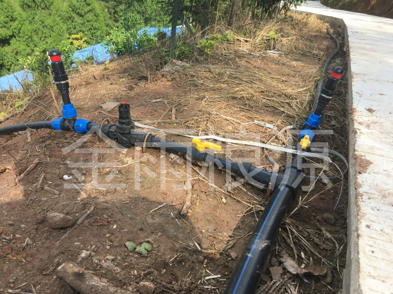 灌溉系統(tǒng)配置:自清洗過濾器+無線閥控系統(tǒng)+注入式施肥系統(tǒng)+一出四滴劍
